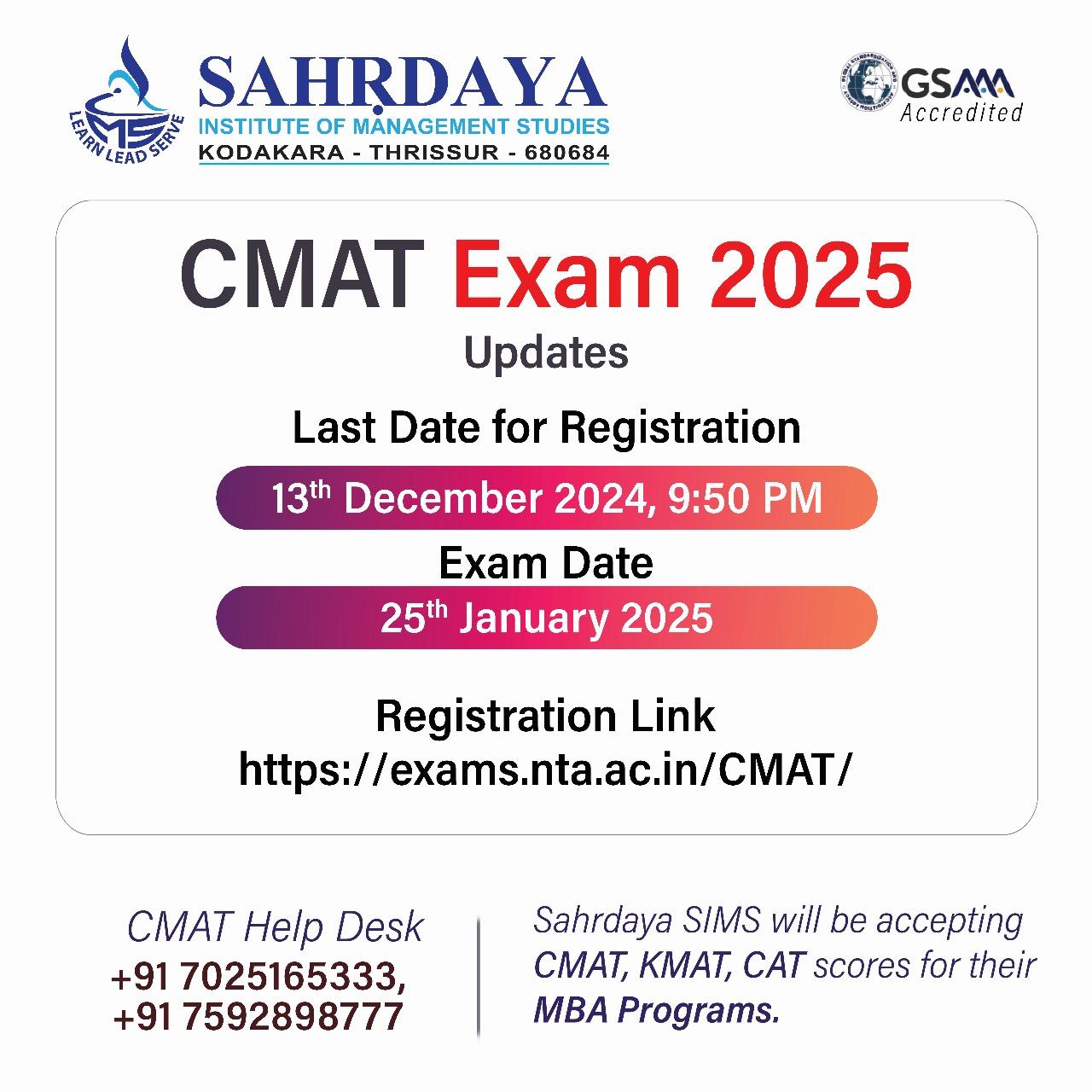 The CMAT Exam 2025 is here! Gallery The CMAT Exam 2025 is here! 15 Jan 2025 By admin|2025-01-04T08:59:29+00:00December 11th, 2024|College News, Events| Read More